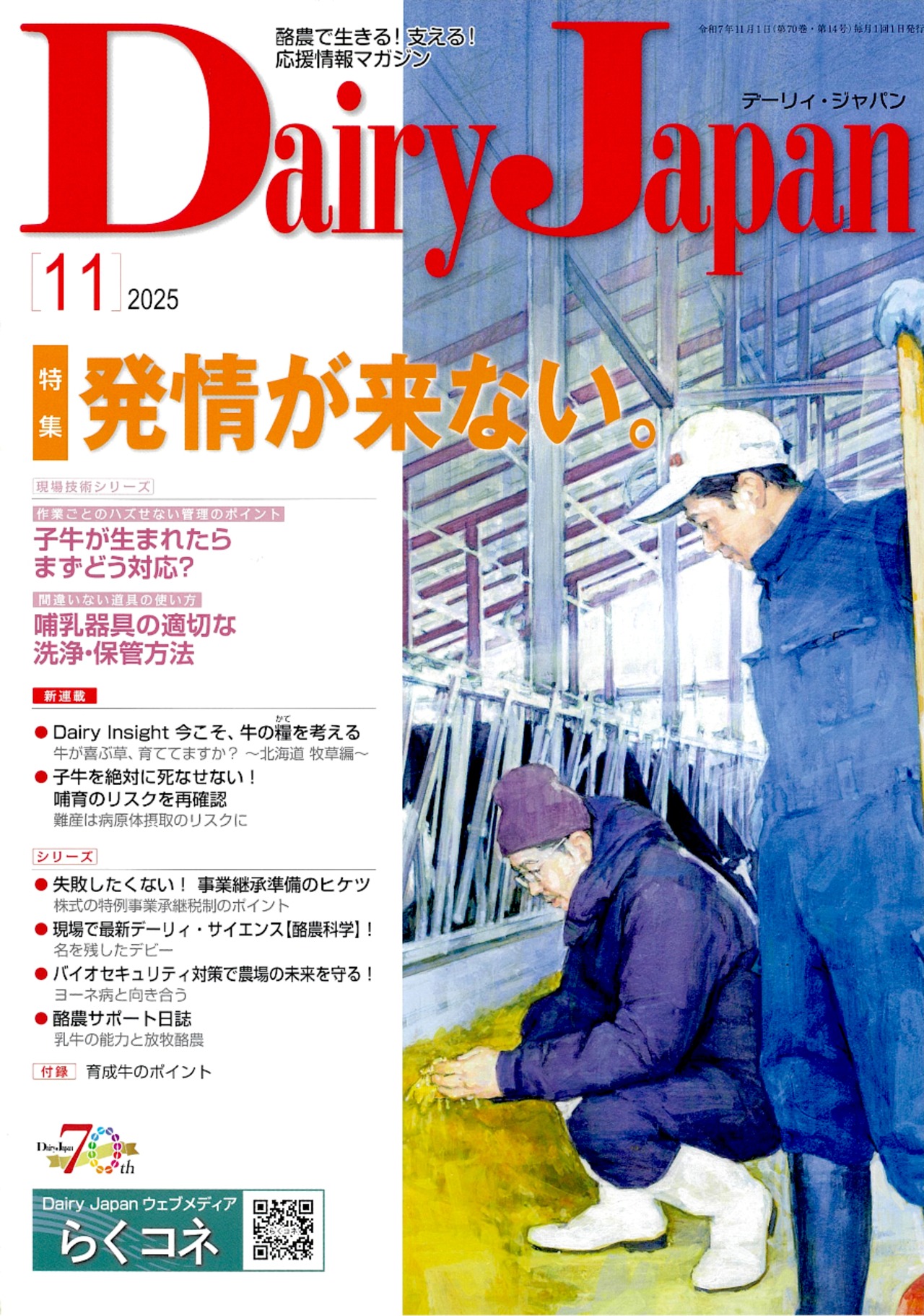 酪農家の利益を常に念頭に置き、栄養、疾病、施設、飼養管理技術など、酪農家の皆さまが必要とする最新の情報をわかりやすく、読み応えのある記事としてお届けしています。